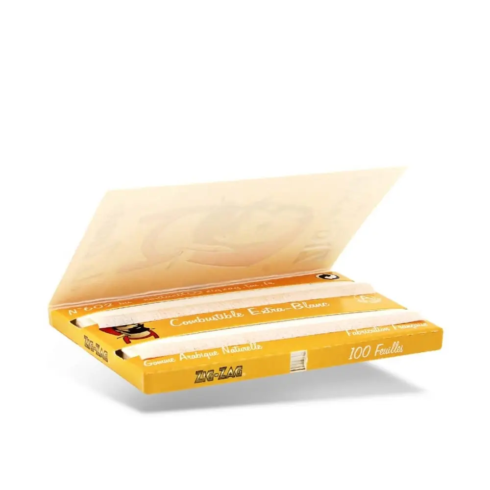 Enjoy a smooth smoking experience with Zig Zag's Yellow Rolling Paper, featuring 10 notebooks of 100 sheets each.