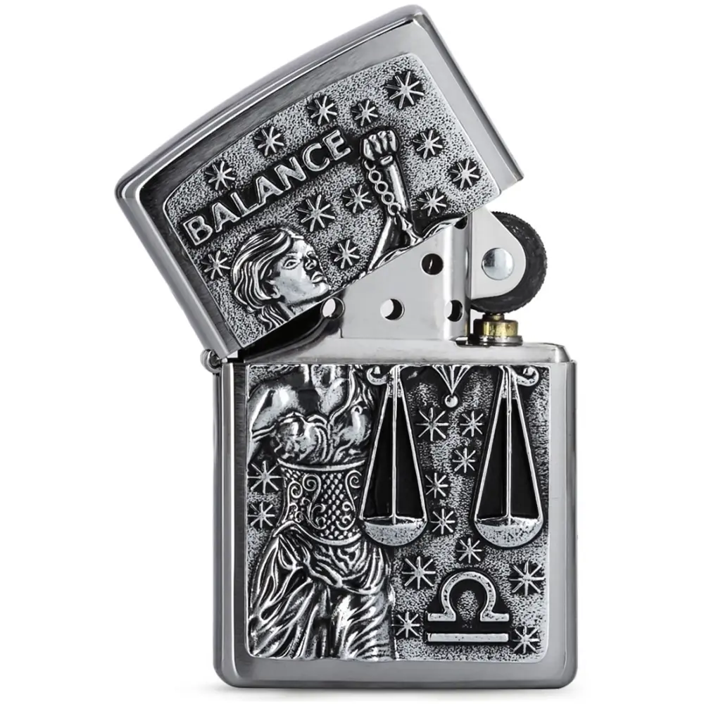Born under the sign of Libra, natives of this sign will find all the authenticity of the brand with this Zippo petrol lighter. The sign of the scales is embossed on the front side and the grid allows this original Zippo lighter to be used in all weathers.