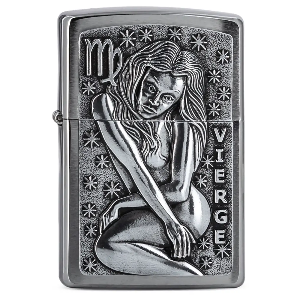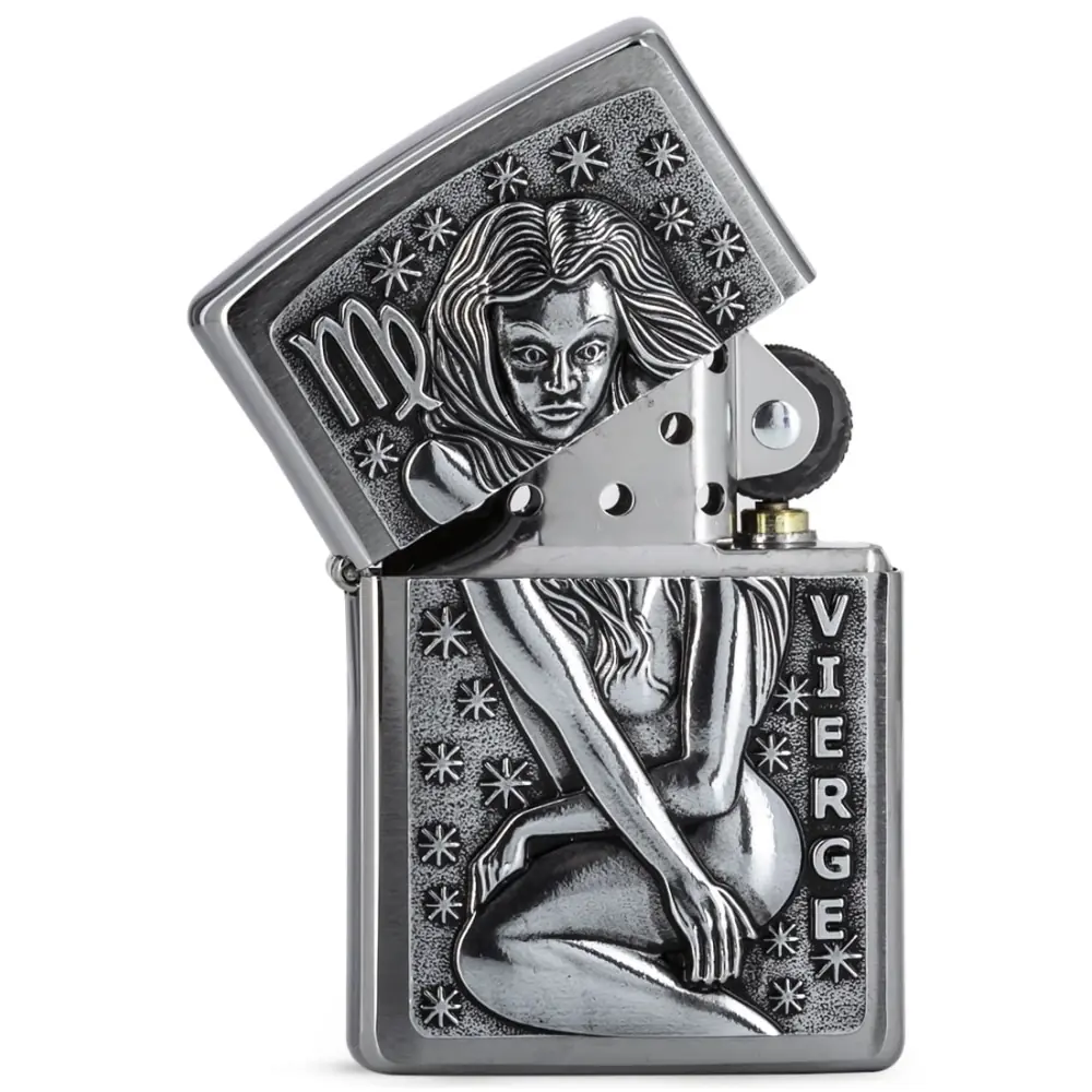 the zippo zodiaque virgo lighter will take on its full meaning once in your hands. this beautiful zippo brand lighter with an embossed front will allow you to proudly show off your logical analytical mind and your talent as a perfectionist. the astrological sign of virgo is faithfully represented on the front of this smoker's object. indispensable just like you this timeless petrol lighter with a perfect design will inevitably find its place at your side.