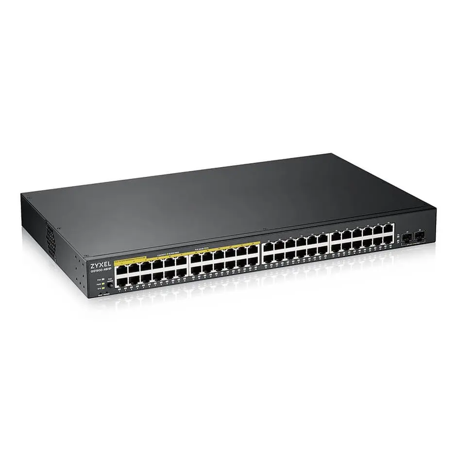 The Zyxel GS1900-48HPv2 is a silent managed switch with intelligent PoE+ for efficient power management.